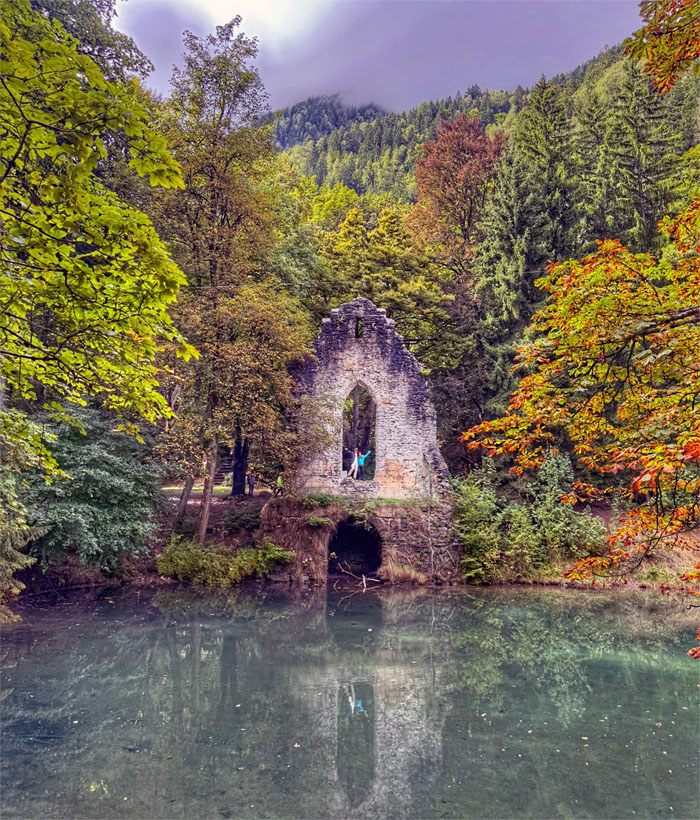 We crossed the road to explore the “ruins” we had sighted from the lake.