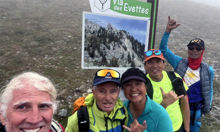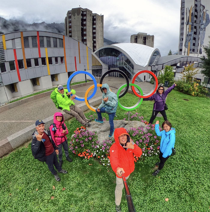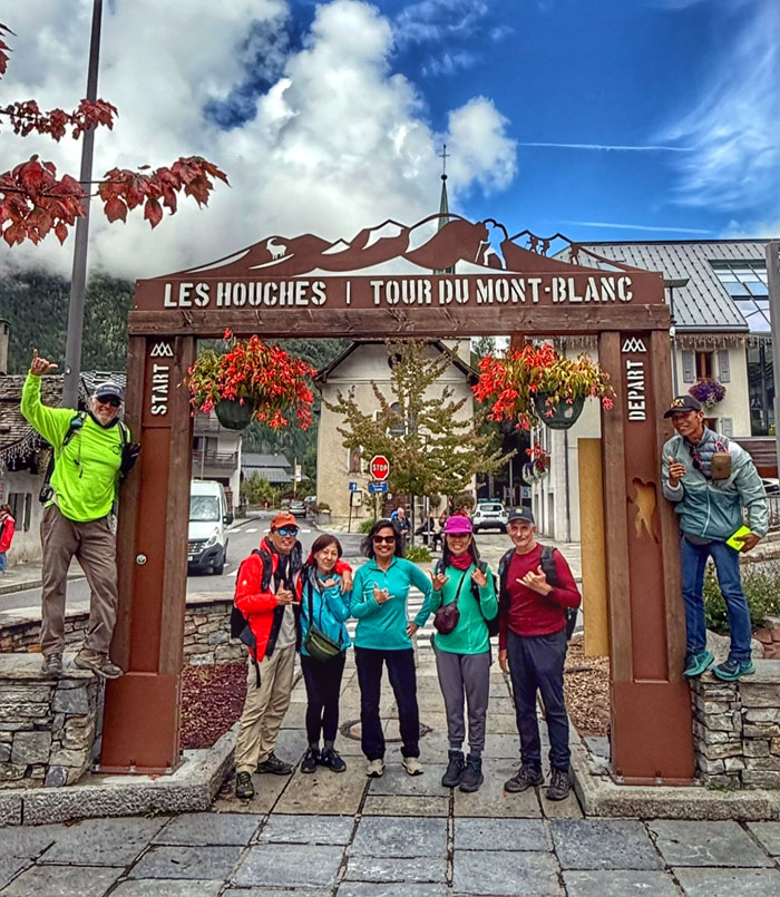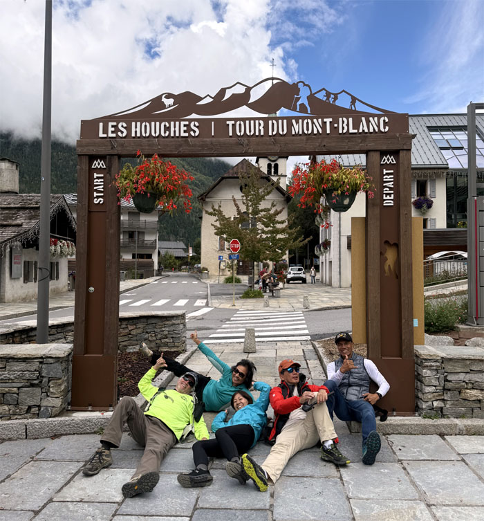Group photo at the famous archway that is the “official” start and end of the TMB trail.