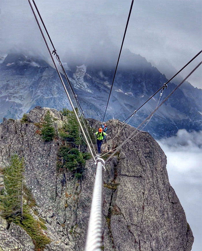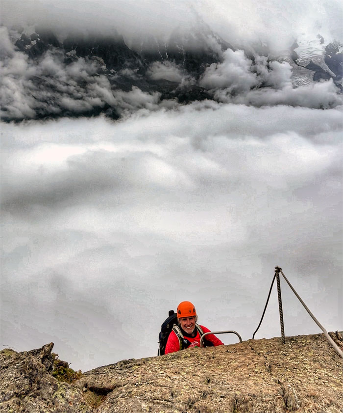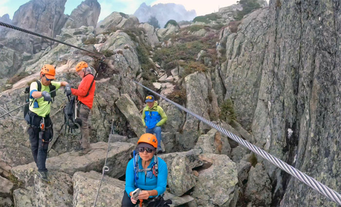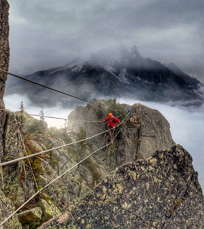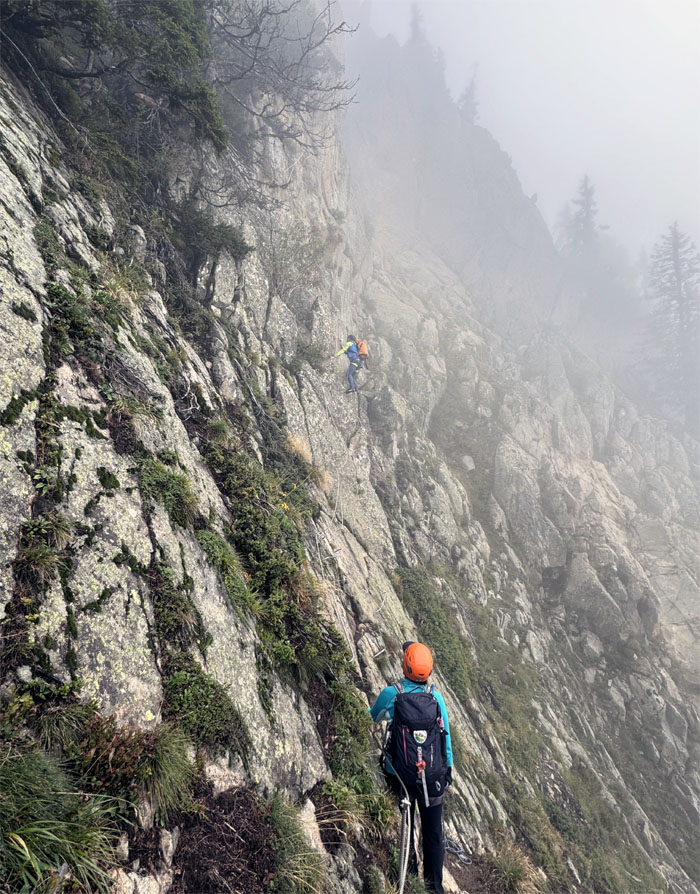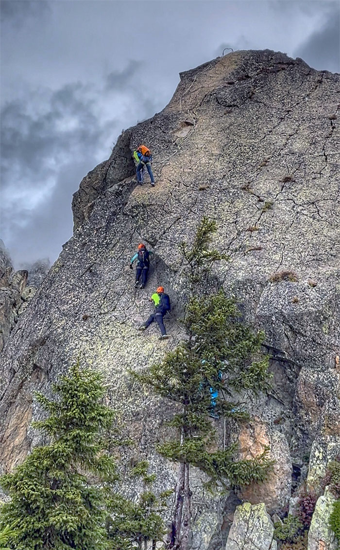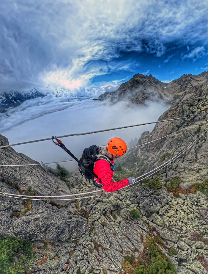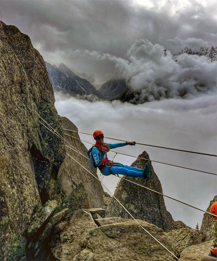 Following the cabled path on the first via ferrata created in Chamonix in 2016.