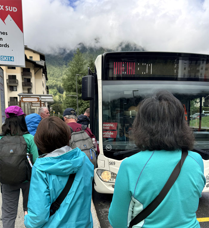 We had our TMB shirts, gaiters and other souvenirs but not the raison d’être for being here, so we boarded the bus to find it.
