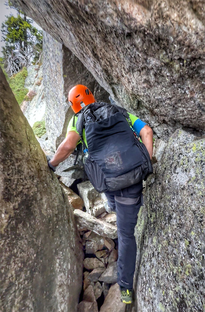 Scrambling over protruding rocks.