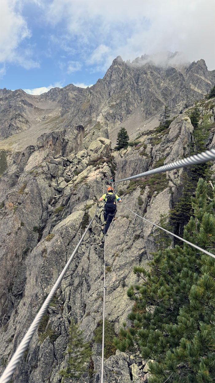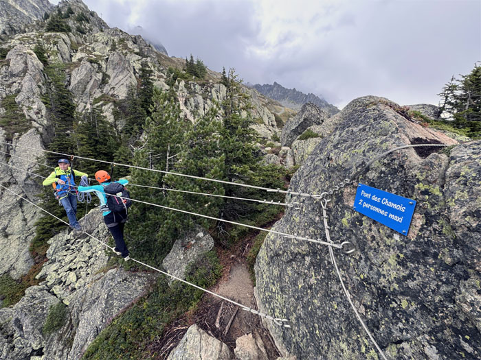 The rest of us crossing on the first suspension bridge, Pont des Chamois, which was roughly 20′ long. A taste of what was to come later.
