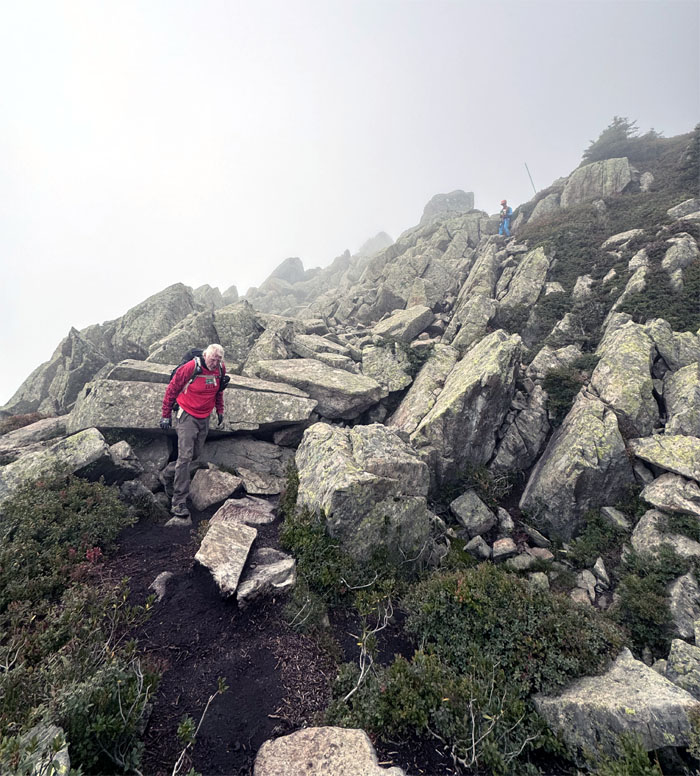 Chico and Ferlino making their way down through the boulder field.