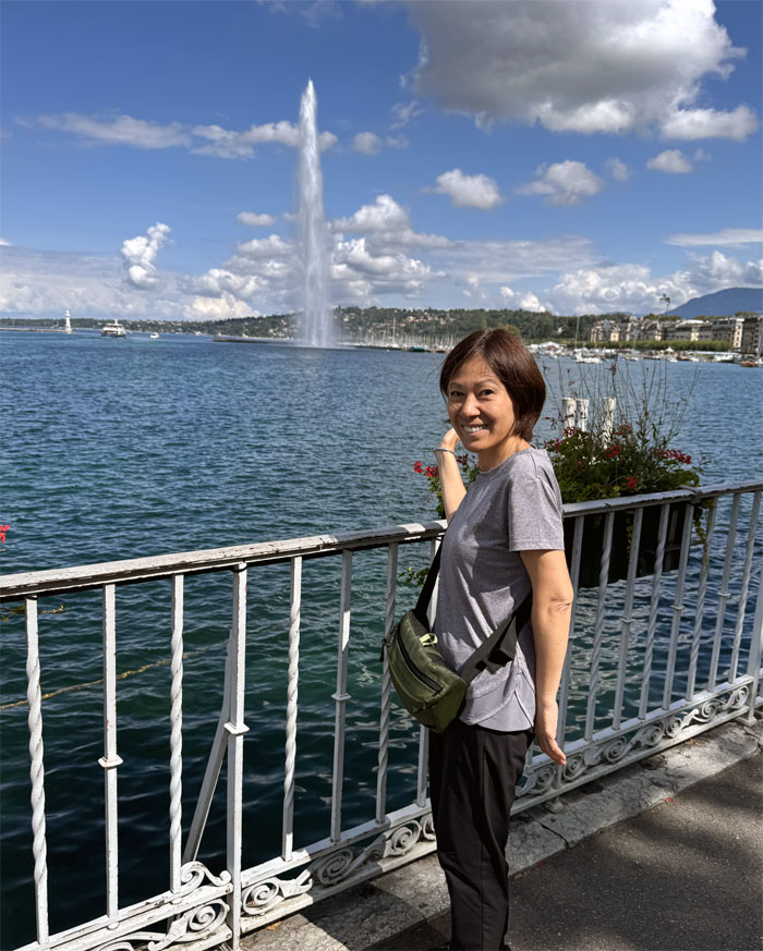 Mari with the landmark water fountain that jets water up to 490′ high. Depending on the spot and wind direction, one may get slightly drenched.