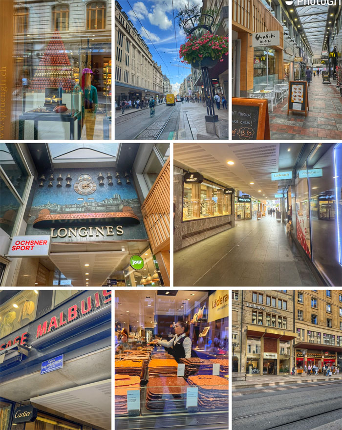 Walking through the commercial heart of Geneva.