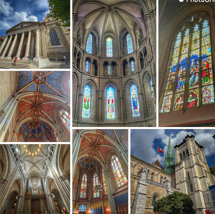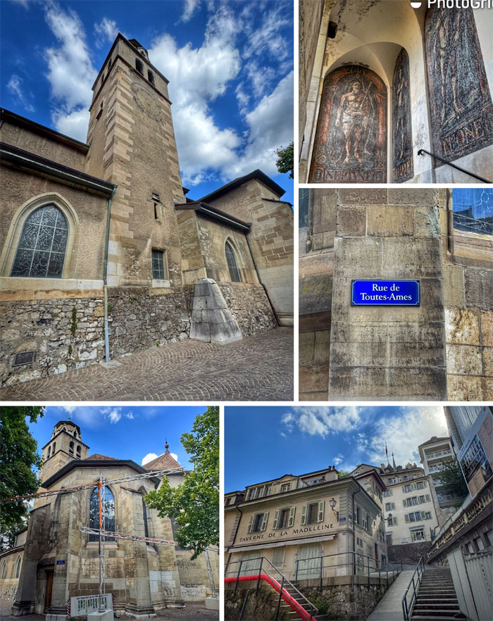 Passing through a Chapelle in the cobblestone square in the old town of Geneva.