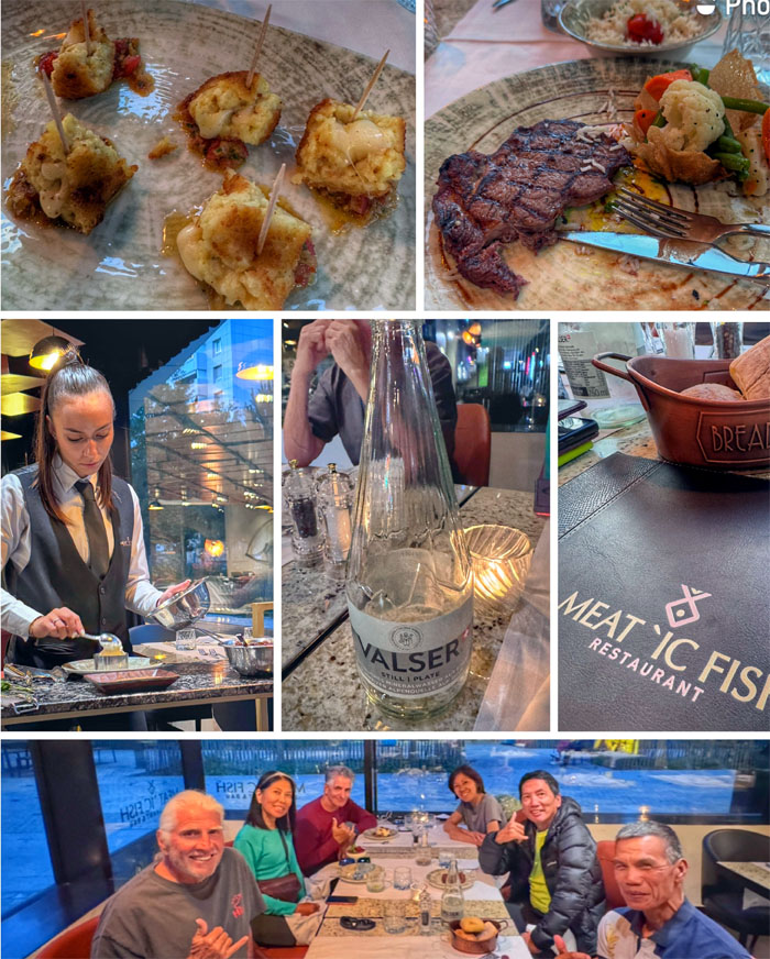 Our last dinner in Europe where we dined on steak, had dessert prepared at our table and got charged roughly 30 dollars for 3 liters of water. Sacre bleu! At least, I brought my own drink. Saved some euros.