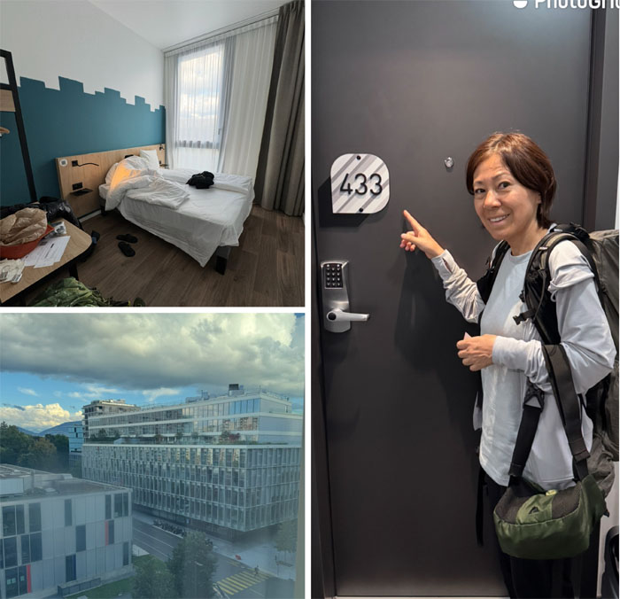 We had lunch at this highly recommended place that served gourmet hot dogs. More like a hot mess. I guess I’m more of a Costco hot dog kind of guy. We then walked back to our hotel and picked up our luggage and waited at the bus stop for our ride to Geneva. What looked like a homeless French person approached us and struck up a conversation with us and turns out he was waiting for his Chinese side piece who soon got off another bus. They then provided bi-lingual drama entertainment by yelling at each other in public, actually the woman was the active participant and the man was the passive participant. Robin, Chico and myself soon boarded the bus while Ferlino got lucky and took an earlier bus. We arrived in the town of Geneva where the bus dropped off the passengers at the first stop and was leaving for our destination, the airport. When the mad hatter woke up and ran up and down the aisle “I fell asleep! I need to get off! Stop the bus! Sorry!” We got off at the airport and was going to foolishly walk to our hotel when a well-placed call saved us and we took the shuttle and checked in.