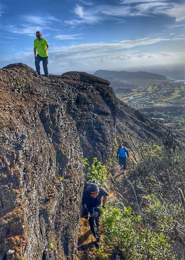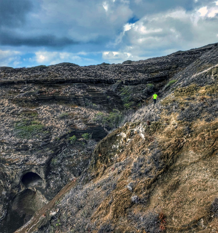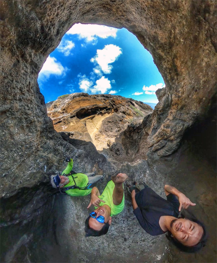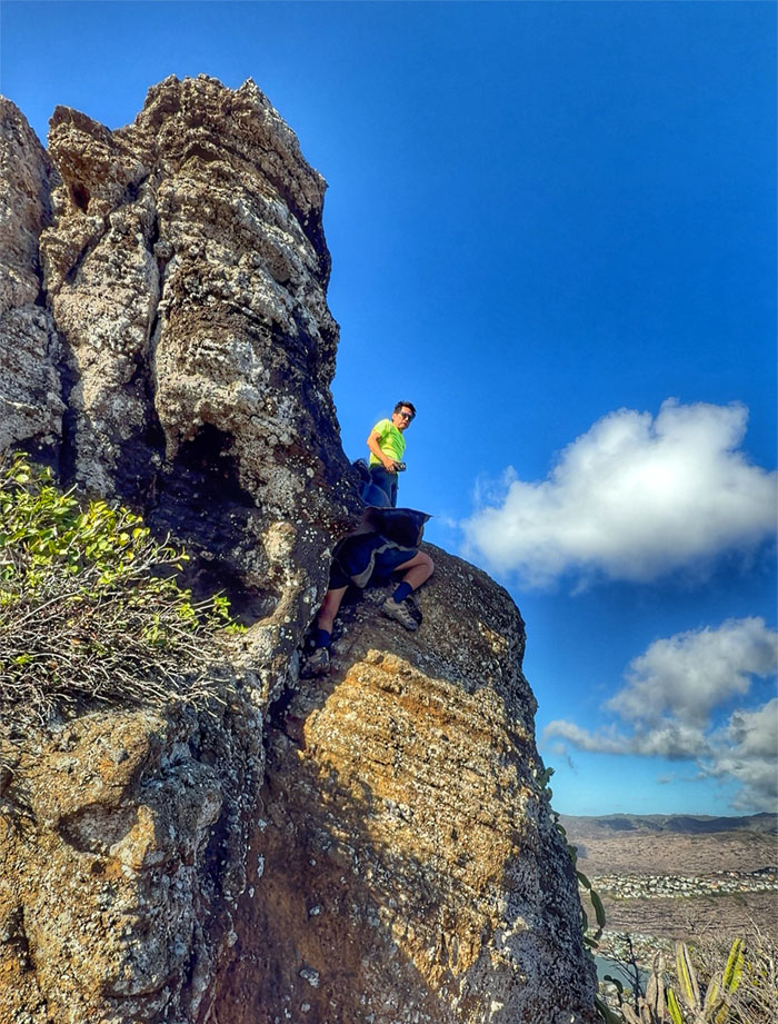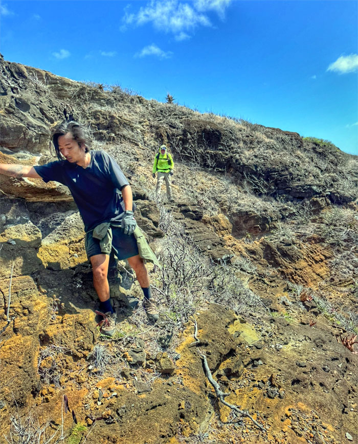 Deja vu. Nobody else wanted to come and share the moment with me as it started raining. Upon rejoining the other two, I discovered my car key was missing. Back to the cave and nowhere to be found. Scrambled back up the ridge and Kenny found it amongst the bushes as we made our way back. A needle in the haystack. Mahalo! Scotty suggested I should air tag my keys like he does. Filed under procrastination. One day.