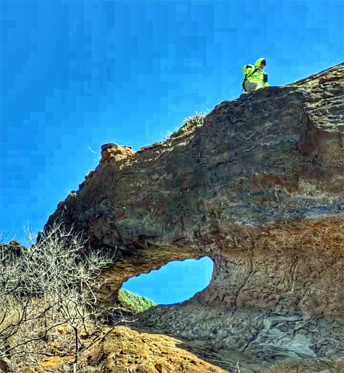 We scrambled down the arch as three other hikers came up the arch. Turned out later that I was chatting with one of the guys online about possibly hiking together at a later date. Small world.