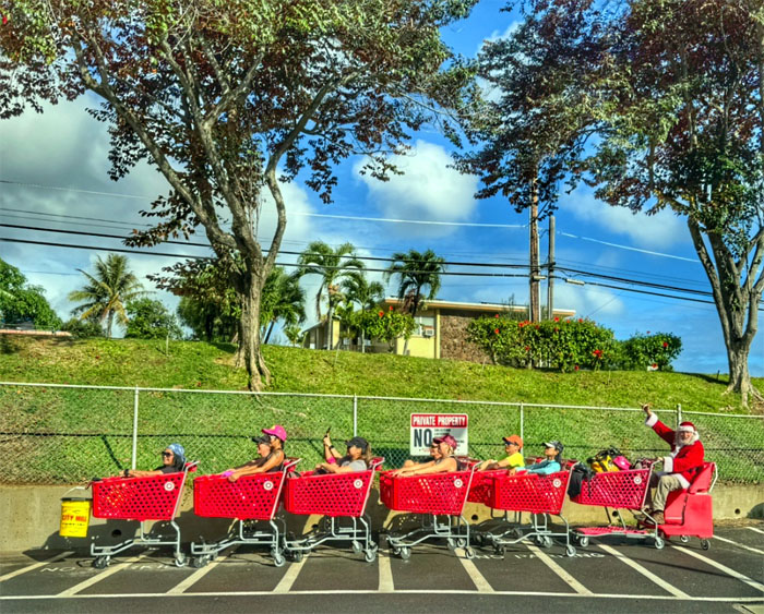 In Hawaii, Santa doesn’t get a plate of cookies, he gets a box of malasadas. Thanks to Kenny for buying us the sugar glazed Portugese doughnuts.