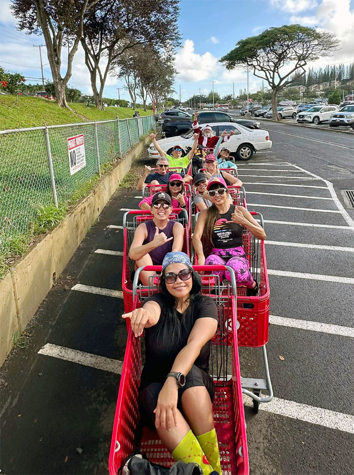 Group photo in front of one of five Leonard’s malasada wagons spread across the island. Photobombers welcome.