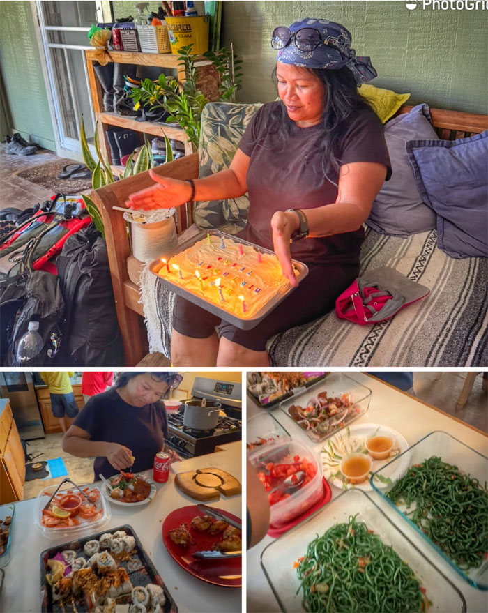 Thanks to everybody for bringing ono food for the pot luck and Mari for baking the birthday cake.