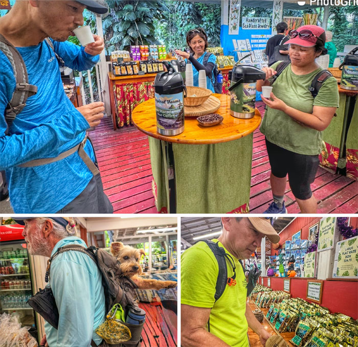 Sampling the free coffee and macadamia nuts.