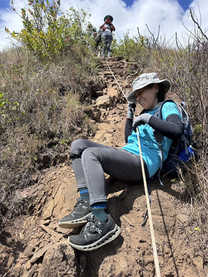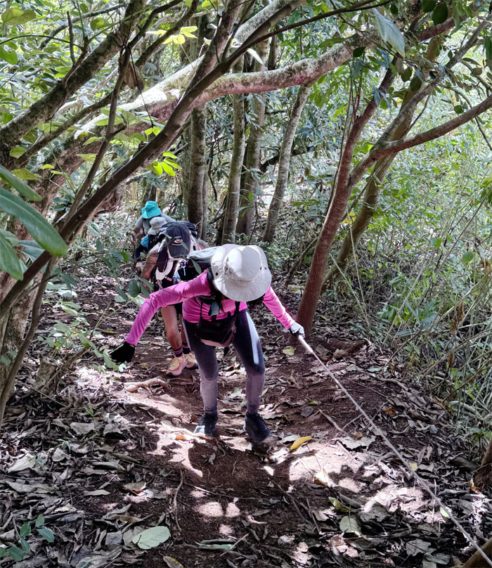 The group going up the trail. Somebody was saying we don’t have hiking shoes, only walking shoes. Hiking is a form of walking.