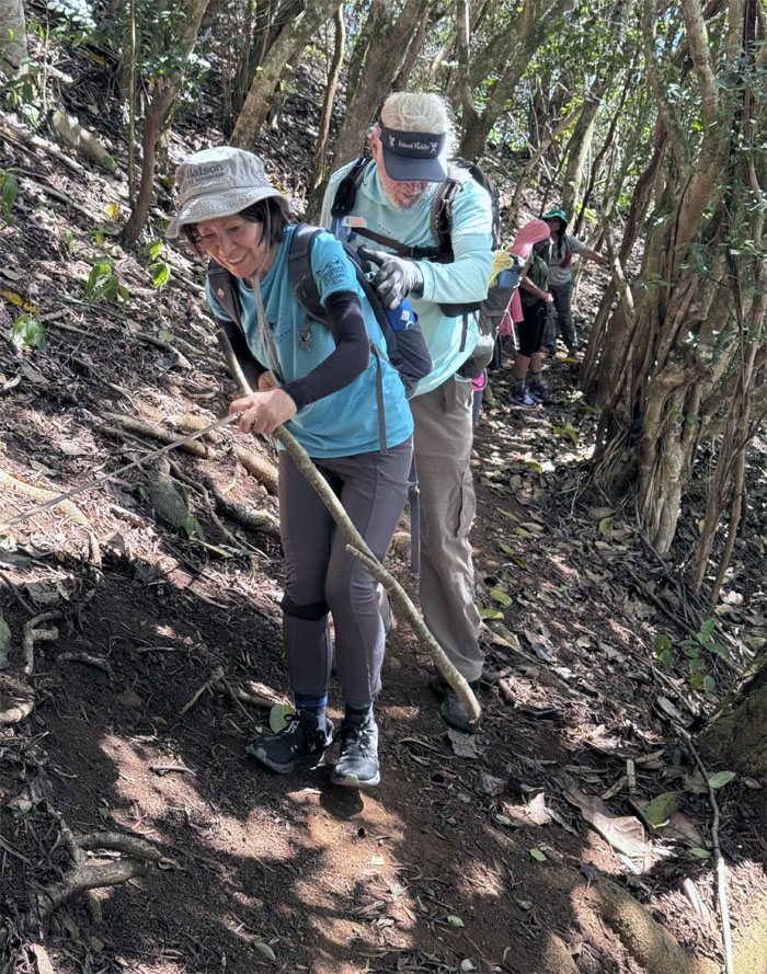 Chico helping Mari across a slippery section. Who said this hike is easy?