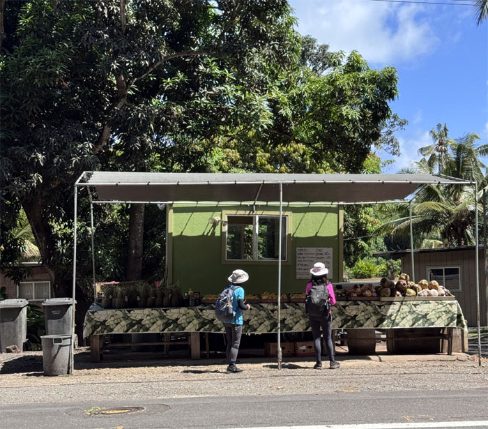 The girls checking out the roadside refreshment stand. Tourist prices.