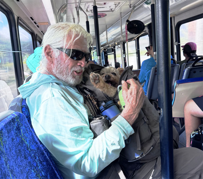 Back on the road. And he’s got a dog too. Double threat.