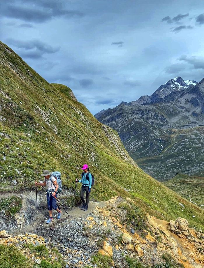 Mari using her “magic hiking sticks” on the trail. This part of the route was supposedly taken by Hannibal of Carthage who traversed the Alps, once thought impossible; with 30,000 soldiers, 15,000 horse mounted cavalry and 37 war elephants in 218 BC against his war with Rome.