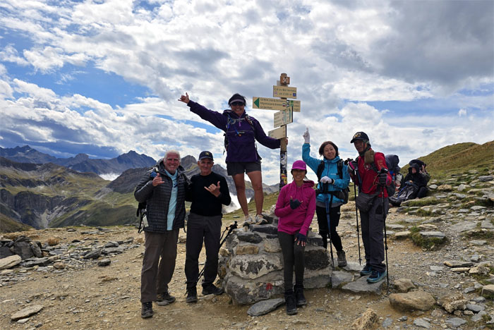 Partial group photo at our second mountain pass at an elevation of 7,641′, which resulted in the largest ascent gain of 4,300′ in one day.