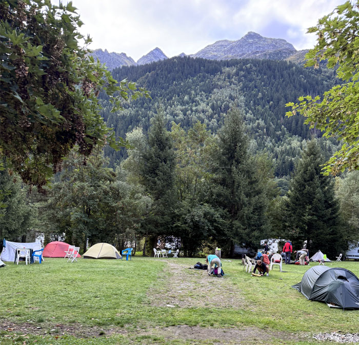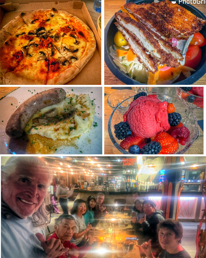 Leave no man behind. Where’s Patrick? We got to our shuttles just as the storm in thunderstorm turned on the faucets full blast or as the French say “Il pleut des hallebardes.” Somebody didn’t appreciate the “rough” drive to the lodge as they got motion sickness. Better to be nauseated than soaking wet.