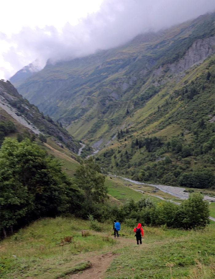 Leaving the hut behind us along with the clouds and rain as we made the long and gradual descent into Les Chapieux.