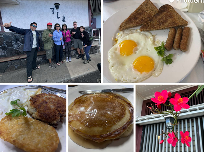 Our flight landed on the Keahole Point runway that was built on the 1801 lava flow and met up with Roger and picked up our Turo Jeep. Brunch was at the Japanese restaurant built in 1957 and consisted of American breakfast fare as lunch time was so close but yet so far.