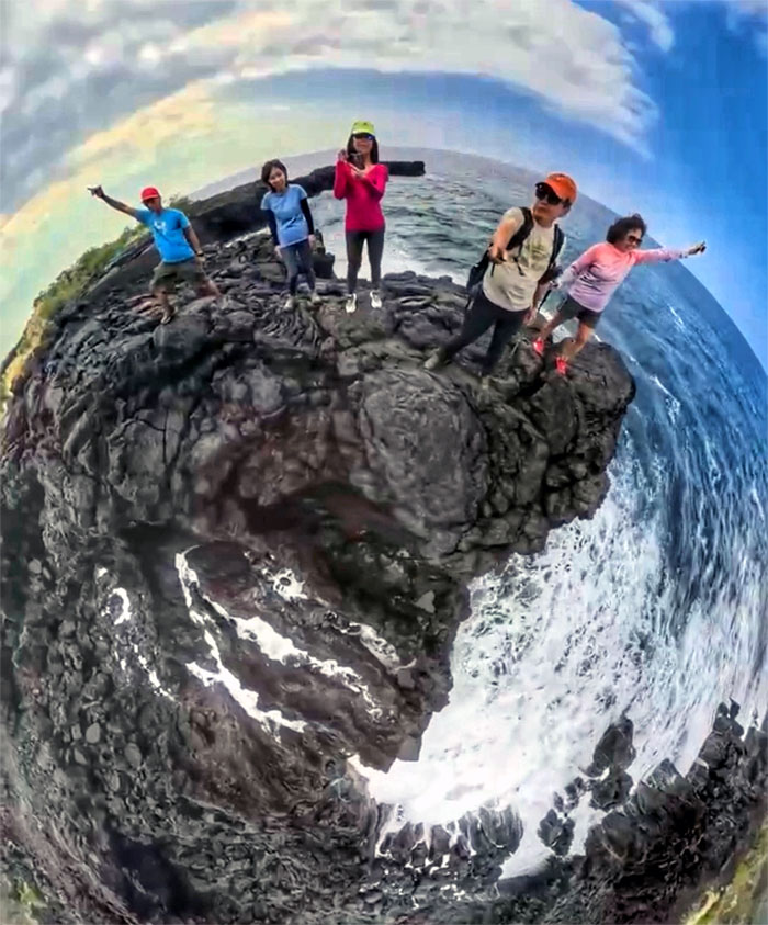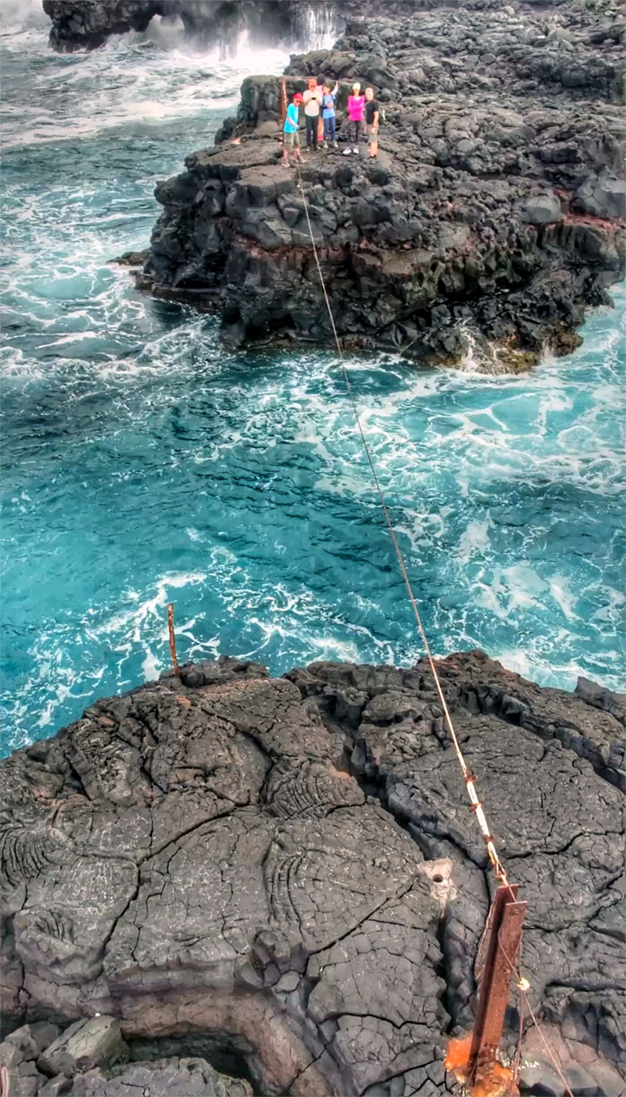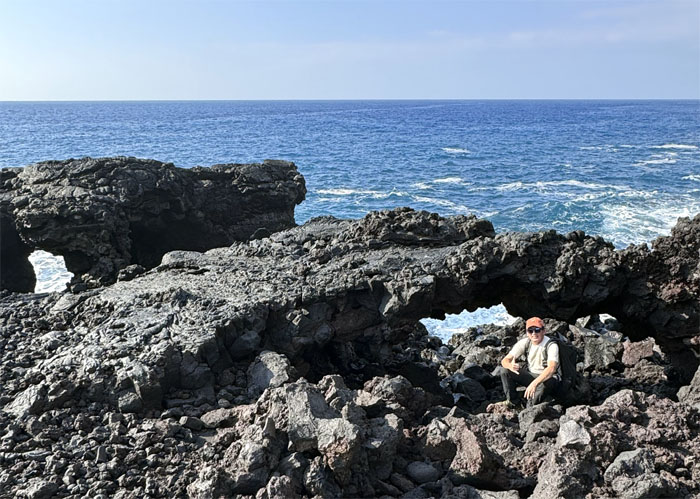Our search for the lava tube that descended vertically into the sea was called off due to lack of time.