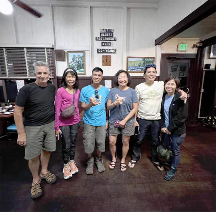 Group photo in the longest continually running restaurant in Hawaii. We retired to Roger’s house to play the card game of Shithead. The former winner declined to play and the host was declared the winner that night.