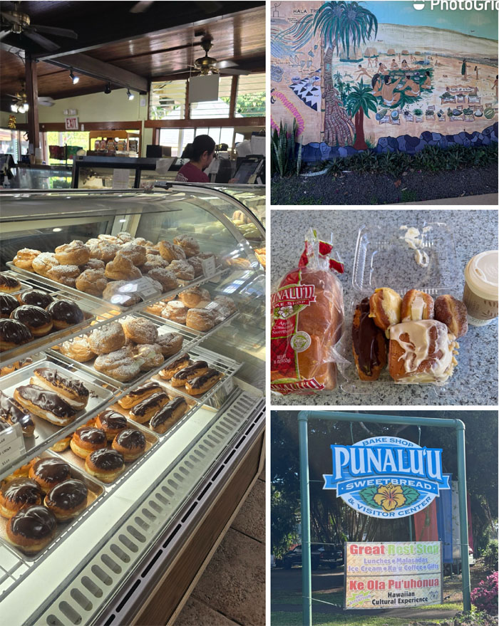 The next day, we had Chicken Papaya for breakfast that Ferlino had prepared the night before. Salamat. We then made the trip to Hilo which takes roughly two hours, on the way we stopped at the Southern most bakery in the US to sample the best malasadas according to somebody. I think she’s all wet. Oh wait, that was yesterday. It was actually ono (delicious).