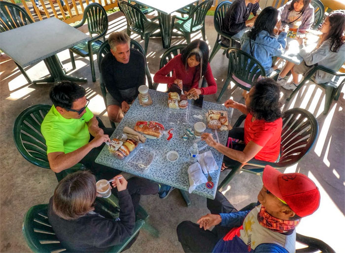 Chowing down our bakery breakfast before continuing the relatively long drive to Hilo.
