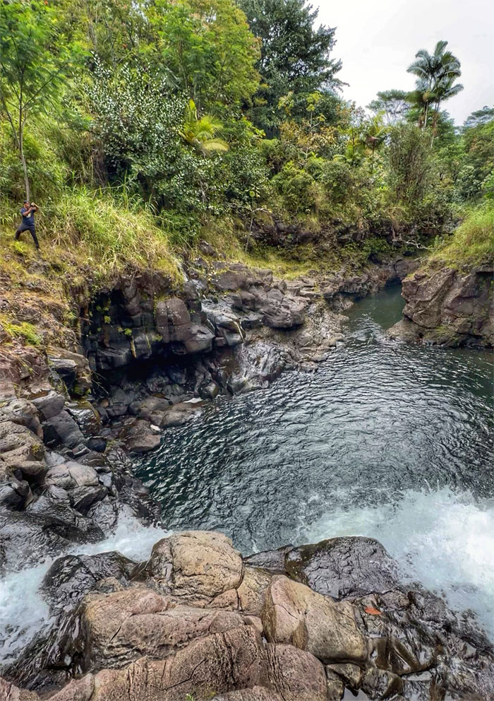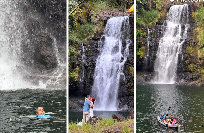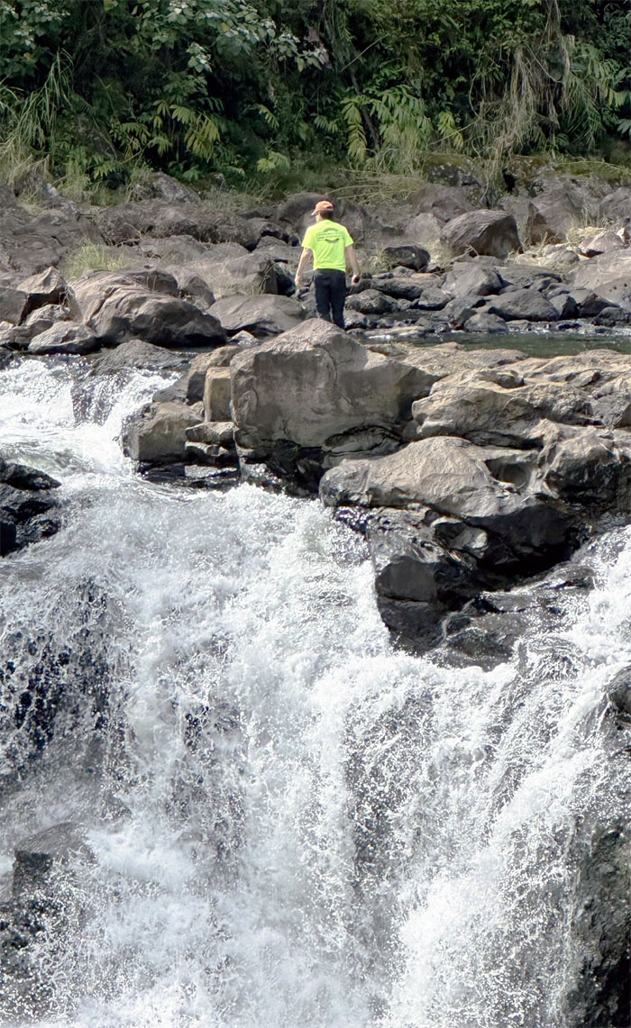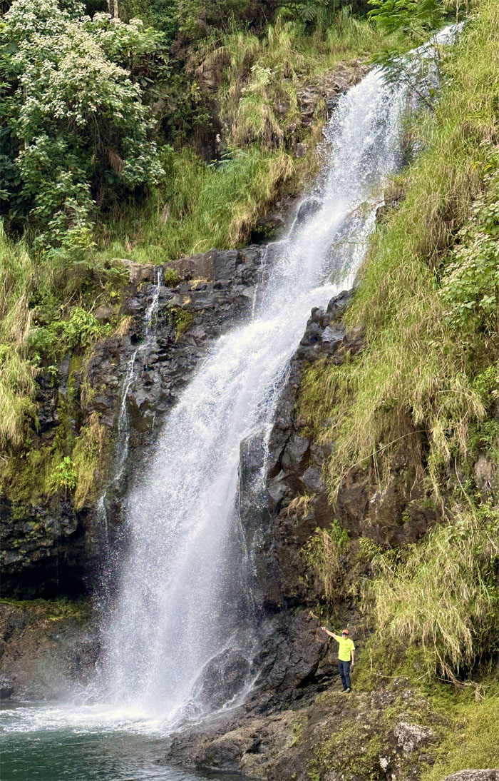 We picked up Scotty and rolled into what is billed as Hawaii’s largest privately accessible waterfall. Mahalo to Scott for the suggestion to check out this place. They don’t take walkups as one might be trampled by the hordes beating a path to their door so to speak. Staff gave us a short briefing and initially I thought this is what we paid a Benjamin for?