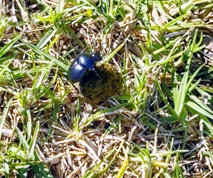 Dung beetle hard at work rolling cow shit into a ball to be buried for food storage which also plays a part in soil nutrition and seed dispersal. They are also quite strong as they can pull over 1,100 times their own body weight, which is the equivalent of an average person pulling four loaded city buses.