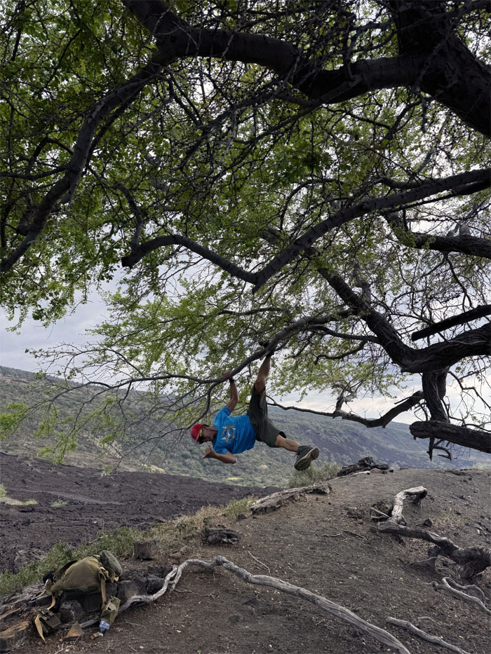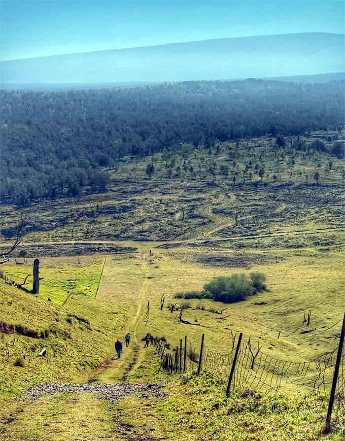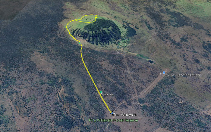 Descending off the cinder cone that sits on the North slope of Hualalai, the third highest peak on the island. Next on my list.