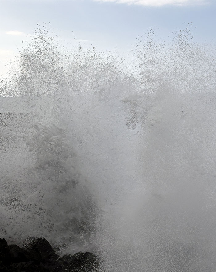 The power of the ocean as demonstrated by the high surf crashing against the rocks which continuously change the character of the coastline.