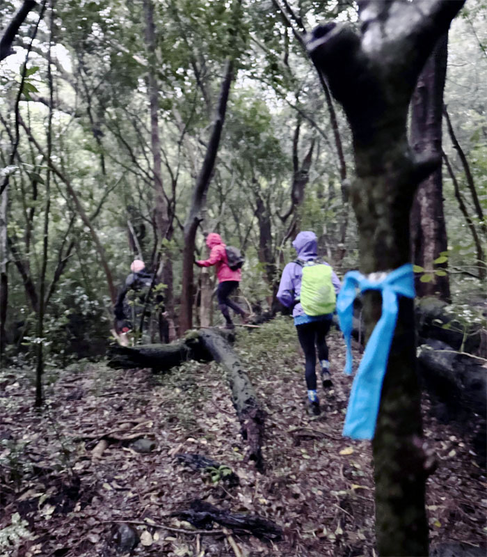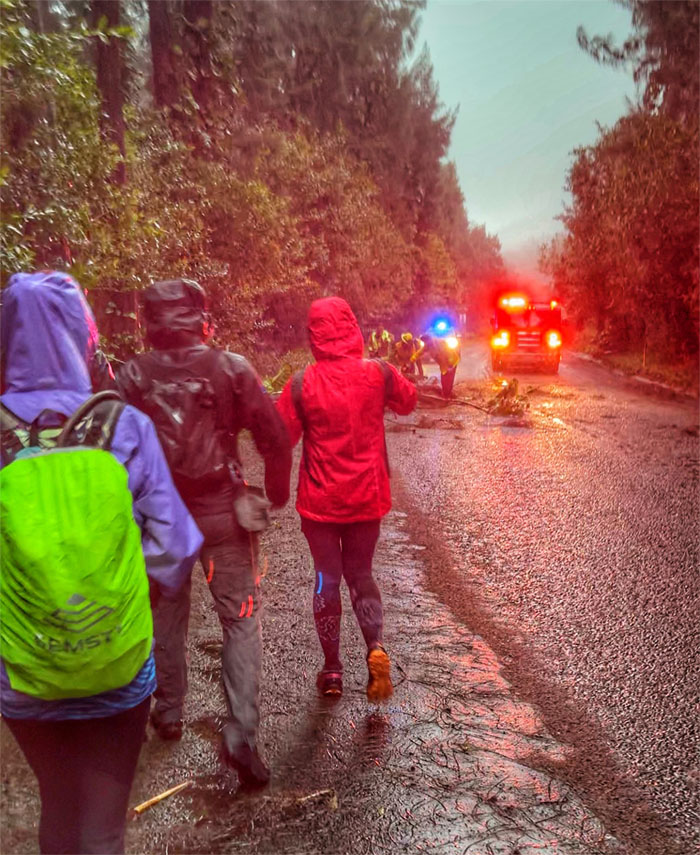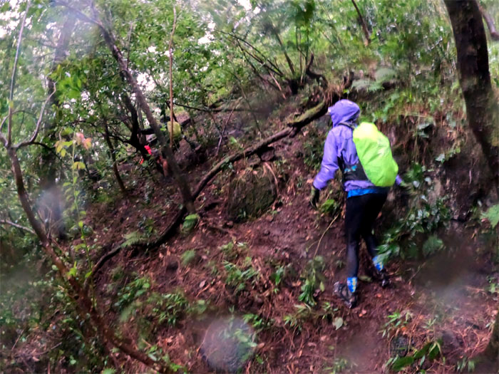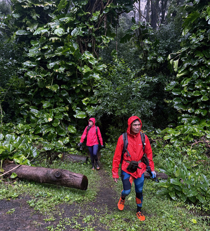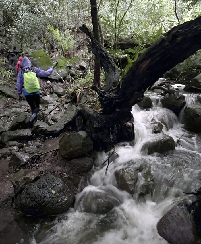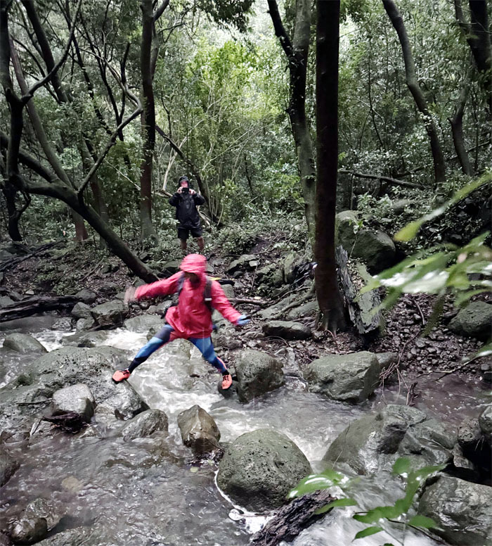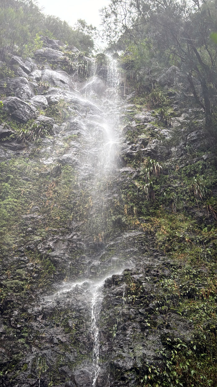 What remained of the group met up at the lookout where we skipped the panoramic views and made our way down the rain soaked road that was blocked by a fallen tree that was being quickly disposed of by HFD who questioned our mental capacity for being out in the storm system that was currently thrashing the islands. I’m pretty sure some of them were making side bets if they were going to be called back later to rescue said hikers.