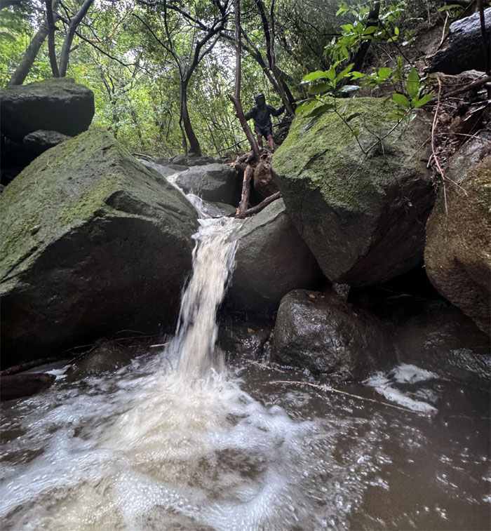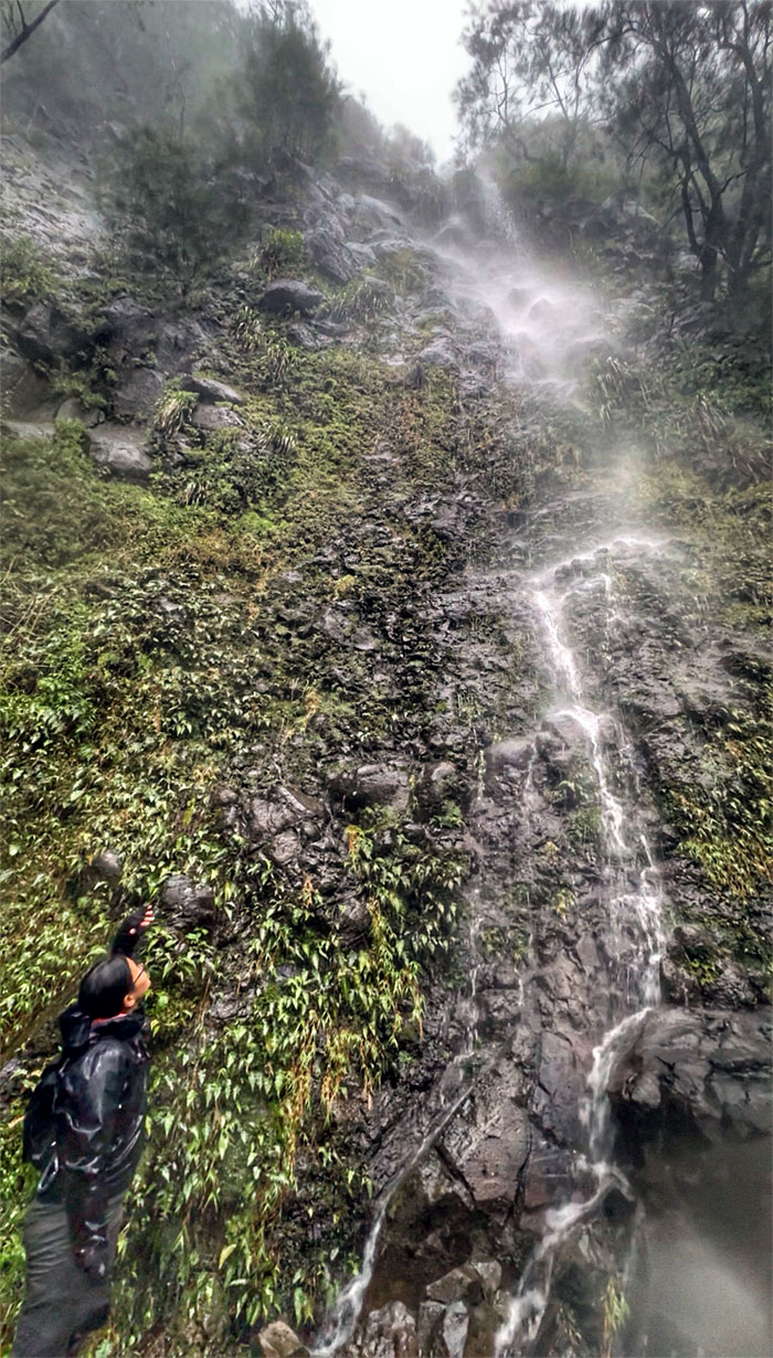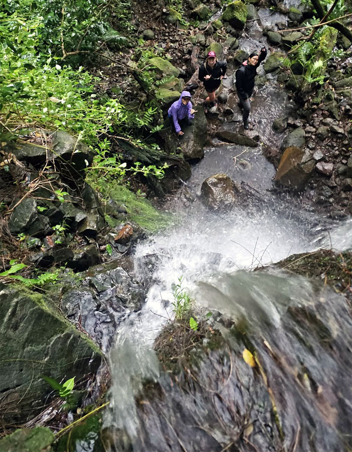 We soon followed him up to the second tier of the falls by climbing and contouring the ridgeline, all except one. The very one that orchestrated this waterfall hike. The wet irony.