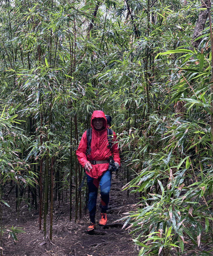 The group going through the bamboo grass forest, whose underground root system ensures that the plants are perennial.